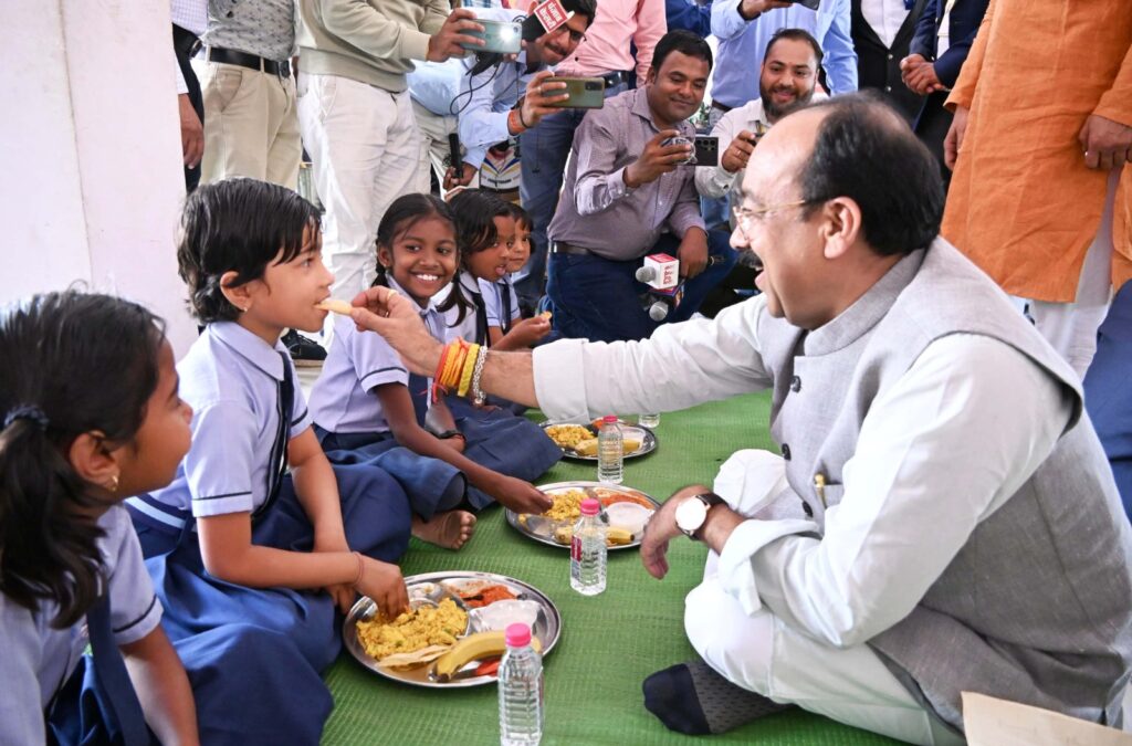 रायपुर। उप मुख्यमंत्री साव तथा स्वास्थ्य मंत्री एवं गौरेला-पेंड्रा-मरवाही जिले के प्रभारी मंत्री श्याम बिहारी जायसवाल आज पेंड्रा में स्कूली बच्चों के न्योता भोज में शामिल हुए। उन्होंने बड़े स्नेह से बच्चों को भोजन परोसा और उनके साथ जमीन पर बैठकर खाना खाया। प्रधानमंत्री पोषण शक्ति योजना के तहत स्वामी आत्मानंद उत्कृष्ट अंग्रेजी माध्यम विद्यालय पेण्ड्रा में गौरेला-पेंड्रा-मरवाही जिला प्रशासन द्वारा आयोजित न्योता भोज में उप मुख्यमंत्री अरुण साव, स्वास्थ्य मंत्री श्याम बिहारी जायसवाल, विधायक धरमलाल कौशिक, प्रणव कुमार मरपच्ची और किरण सिंह देव ने बच्चों को खीर, पूड़ी, पुलाव, पापड़, सलाद, चटनी और केला परोसा। उन्होने नन्हें बच्चों को अपने हाथों से खाना खिलाया और उनके साथ लाइन में बैठकर भोजन किया। उप मुख्यमंत्री, स्वास्थ्य मंत्री और विधायकों के साथ जनप्रतिनिधियों ने बच्चों के साथ पौष्टिक और स्वादिष्ट न्योता भोज किया।