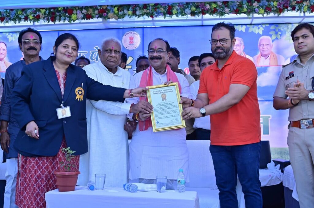 इस अभिनव पहल को गोल्डन बुक ऑफ वर्ल्ड रिकॉर्ड्स में दर्ज किया गया। इस महाअभियान का जिला स्तरीय भव्य कार्यक्रम मुंगेली विकासखंड के ग्राम लोहड़िया और रामपुर स्थित महात्मा गांधी आक्सीजोन परिसर में आयोजित हुआ, जिसमें छत्तीसगढ़ के उप मुख्यमंत्री अरुण साव मुख्य अतिथि के रूप में शामिल हुए। उन्होंने आम के पौधे का रोपण कर जल और पर्यावरण संरक्षण का संदेश दिया।